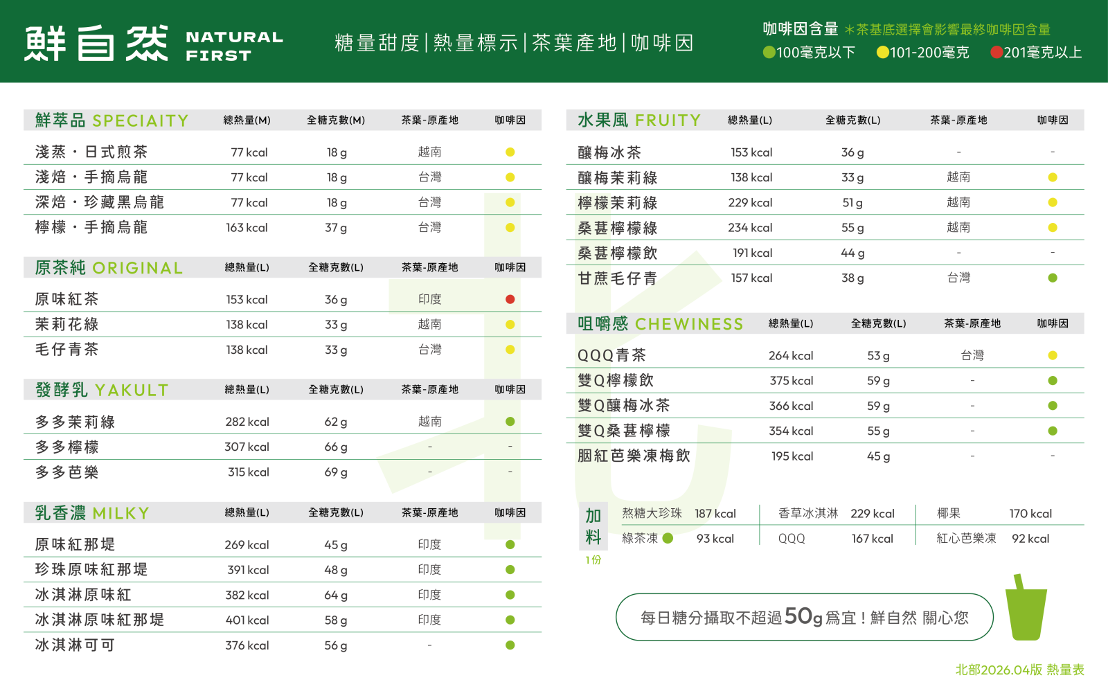 產品標示|熱量|咖啡因